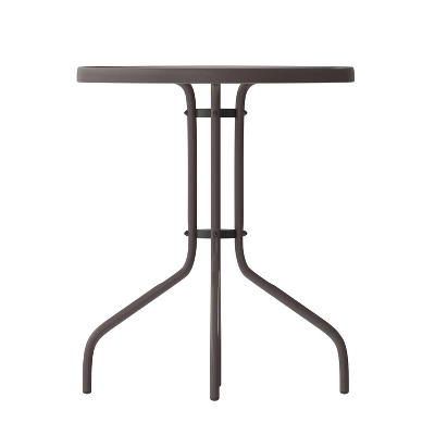 Create the perfect relaxing or entertainment environment with this patio table. This glass table will enhance your bistro, cafe, restaurant, hotel or home patio space. The ripple designed table top features a smooth surface for keeping items level. The table was designed for all-weather use making it a great option for indoor and outdoor settings. For longevity, care should be taken to protect from long periods of wet weather. A black powder coat finish lends the round-shaped table a bold, versatile appearance that matches well with your favorite chairs.