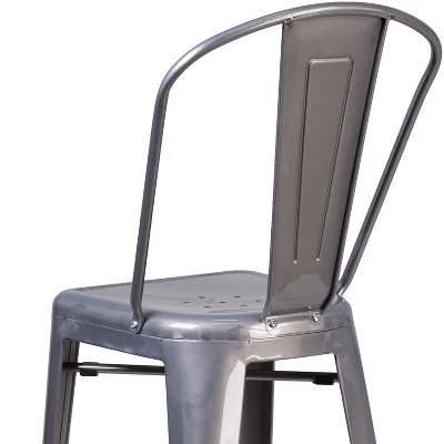 Instantly add an urban look and feel to your dining area with this clear coated metal bar stool with vertical slat back. This stool’s curved, vertical slat back provides firm spinal support and pairs with pub and bar height tables to ensure guests are at a comfortable height to enjoy your signature drinks, appetizers, entrees and desserts. Additionally, its flat, drain hole seat is easy to clean which is a must in the hospitality industry. An under-seat cross brace provides additional stability while the lightweight design allows for easy movement and transportation. This metal dining stool boasts protective floor glides to help keep floor surfaces in pristine condition. So whether you’re using this stool for your kitchen at home or your commercial bar it will liven up any decor. Additional Features: Powder Coated Frame Finish, Cross Brace under seat provides extra stability, Floor Protector Plastic Glides, Footrest, Lightweight Design, Designed for Indoor Use Only, Designed for Commercial or Residential Use