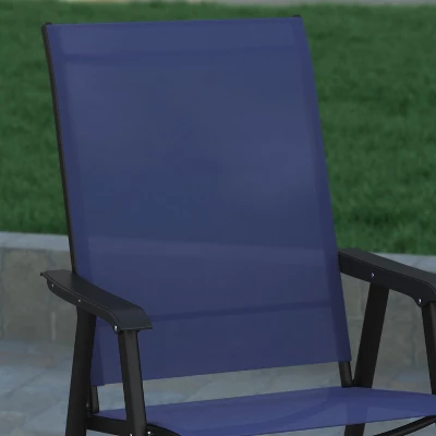 Lounge poolside or under a gazebo on this folding sling chair to be used on its own or with a patio dining table. These patio dining chairs are very comfortable in a textilene upholstery that is breathable to keep you cool during the hot summer months. Weather resistant powder coated frames are durable and are for year-round use. When you have outdoor sporting events you can use this portable folding chair that folds compactly and is lightweight to tote around effortlessly. Ensure that you always have a seat by taking with you to the community pool. Purchase several of these outdoor chairs for gatherings and parties. This set of 2 folding patio chairs can be used on the go or anywhere in or outside of the home. These chairs come ready for use to enjoy upon arrival. Pair with our glass patio table to complete your outdoor patio dining set.