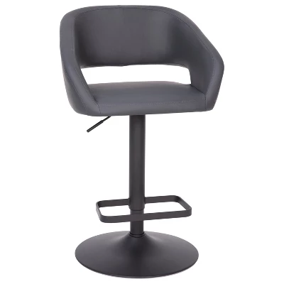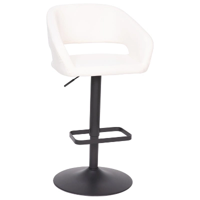 Style and function blend seamlessly in the design of this modern barstool. Featuring a comfortable mid-back design with a cut-out for added detail, this stool offers padded support in all dining settings. Durable fabric upholstery is easy to care for and wipes clean with water and a neutral detergent. The sturdy metal base supports up to 330 lbs. of static weight for worry free seating and has an integrated footrest for added comfort. Put at your kitchen island or bar with the easy gas lift mechanism that allows the 360° swivel seat to adjust from bar to counter height with a lever control. The wide pedestal base offers reliable stability and is fitted with a plastic ring to protect flooring and prevent slipping. For easy upkeep, simply wipe clean with water and a neutral detergent.