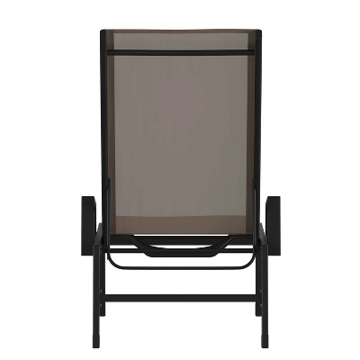 Nice weather is right around the corner and you will be more than ready when you have this 5 position adjustable lounger with integrated arms. With recline angles from 120° to 180° you can sit up to read that bestseller you’ve been meaning to get to, lay flat to take a little nap or enjoy the recline positions in between. Breathable textilene fabric allows for airflow to keep you cool and is quick drying making it ideal for poolside use. Designed to stand up to the elements, this lounge chair is UV fade and weather resistant and boasts a powder coated rust-resistant steel frame that holds up to 350 lbs. static weight. Protective floor caps prevent damage to indoor flooring and keep the chair in place when you sit or stand. Weighing in around 20 lbs. this outdoor lounge chair is highly portable to take along to your favorite locations. Assembly takes less than 30 minutes and cleanup is quick and easy with a damp cloth, perfect for busy households. Purchase several to complete your indoor or outdoor setup.