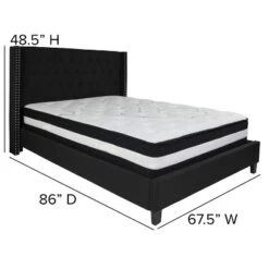 Emma And Oliver Queen Accent Extended Panel Platform Bed/Mattress-Black Fabric