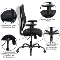 Emma And Oliver 24/7 350 Lb. Big & Tall Black Mesh Synchro-Tilt Swivel Ergonomic Office Chair