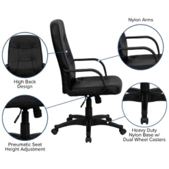 Emma And Oliver High Back Black LeatherSoft Multifunction Ergonomic Office Chair, Lumbar Knob