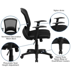 Emma And Oliver Mid-Back Black Mesh Multifunction Swivel Ergonomic Task Office Chair – Arms