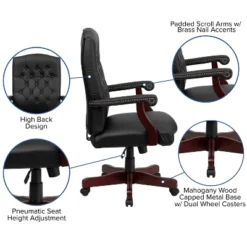 Emma And Oliver Mid-Back Black LeatherSoft Executive Ergonomic Wood Swivel Office Chair – Arms