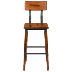 Emma And Oliver 4 Pack Commercial Grade Rustic Walnut Industrial Style Wood Dining Barstool