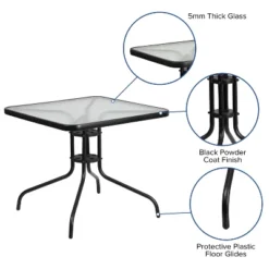 Emma And Oliver 31.5” Round Glass Top Metal Table With 4 Aluminum Slat Stack Chairs